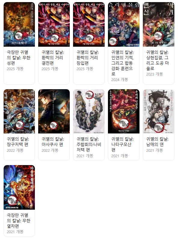 | 귀멸의 칼날: 무한성 편 3부작 개봉 일정 및 지금까지 시리즈 정리 (0) | 2025.05.08 |
