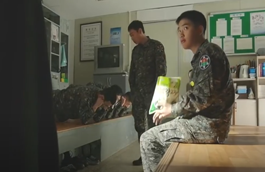 김수홍 병장이 원일병을 아끼고 친동생처럼 대하며 함께 유대를 쌓아가는데 한몫했던 이등병의 편지 노래를 카피추가 개사하여 좀 더 디테일하게 부른 것인데요. 기타소리와는 다르게